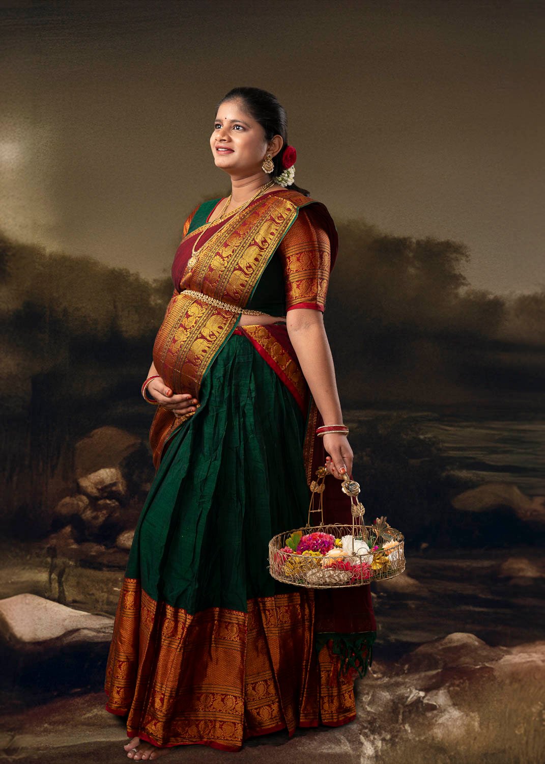 Our luxury studio in Kondapur, Hyderabad offers everything you need for a stunning experience: 30+ premium maternity gowns, professional lighting, expert posing guidance, and a warm, comfortable space that feels like home.